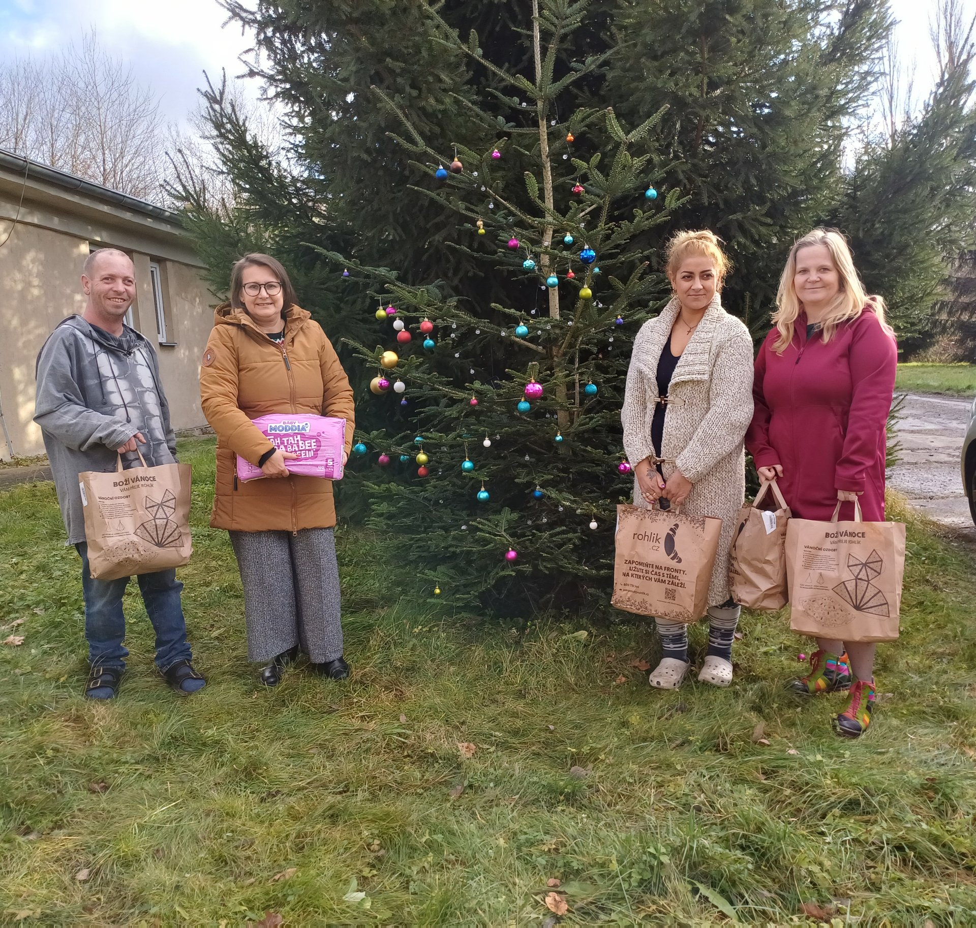 Předat jsme dárky stačili ještě před Vánocemi u nazdobeného stromku.